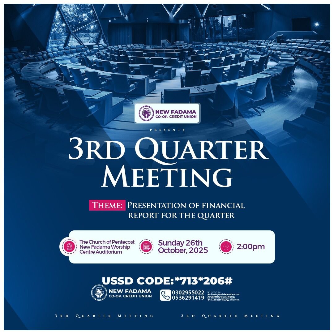 The New Fadama Co-operative Credit Union (NEFCCU) held its 3rd Quarter Management and Members Meeting for the period July – September 2025 on Sunday, 26th October 2025, at the Pentecost Church, New Fadama. The meeting, which began at 2:38 p.m. with an opening prayer led by Miss Monica Serwaa, provided an opportunity for management, board …